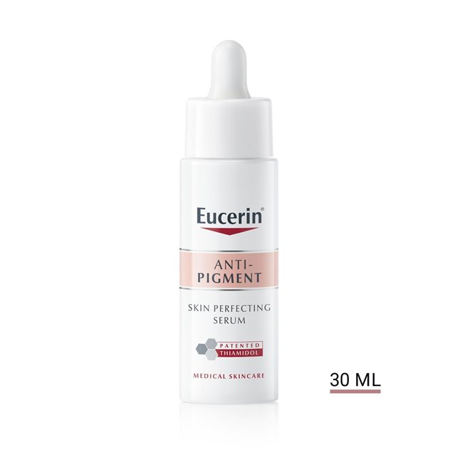 Anti-Pigment jumet ühtlustav seerum sisaldab kontsentreeritud Hyaluronic Acid mis parandab naha niiskustaset. See on tõhus üksi kasutamisel, olemasoleva nahahoolduse osana või koos teiste Eucerin Anti-Pigment range. tootesarjas olevate toodetega.