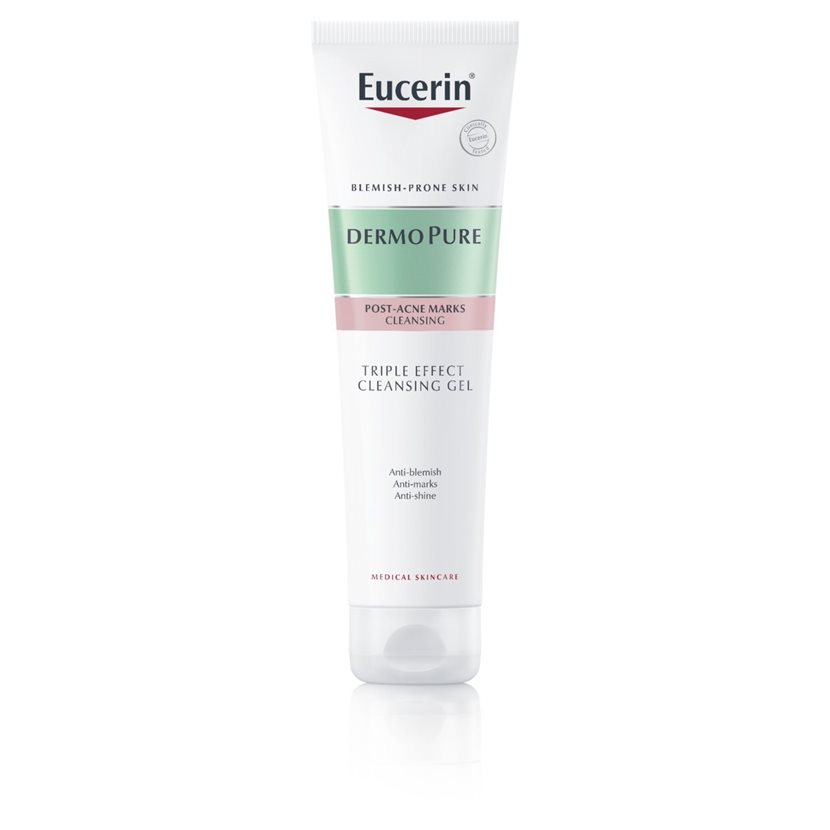 Eucerin DermoPure kolmekordse toimega puhastusgeel, mis sisaldab 2% salitsüülhapet, aitab teil lõpuks vabaneda iluvigadest ja aknejärgsetest laikudest kolme põhiteguri abil: