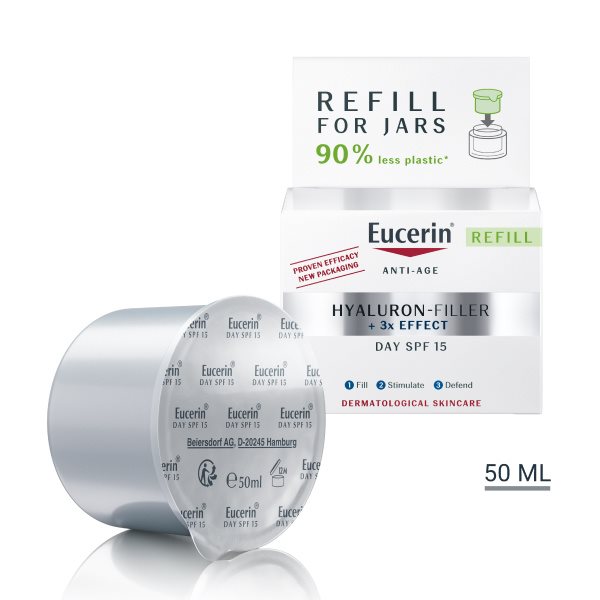 Eucerin Hyaluron-Filler päevakreem SPF 15, millel on kolmekordne toime, võitleb selle protsessiga.