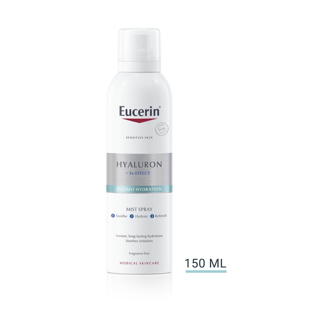 Give your skin an instant boost of hydration and freshness with Eucerin Hyaluron-Filler +3x Effect Intense Hydra Spray. This ultra-light hydrating face mist delivers long-lasting moisture while soothing and revitalizing the skin. Simply hold the face spray about 20 cm from your face, close your eyes, and apply an even mist over your face, neck, and décolleté. The fine face spray mist absorbs quickly, leaving your skin feeling smooth, refreshed, and naturally radiant.