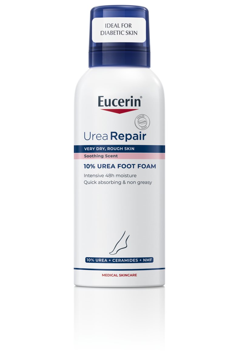 Eucerin UreaRepair PLUS 10% uureaga jalakreem ja Eucerin UreaRepair PLUS 10% uureaga jalavaht sisaldavad tõhusaks mõjuks samu põhikoostisosi, kuid Eucerin UreaRepair PLUS 10% uureaga jalavahul on mõningad olulised erinevused. See on lõhnastatud, vahulise tekstuuriga ja pihustuspudelis, mis pakub kreemist erinevat kasutuskogemust. Samuti on see kiirelt imenduv, ei kleepu ega ole rasvane.